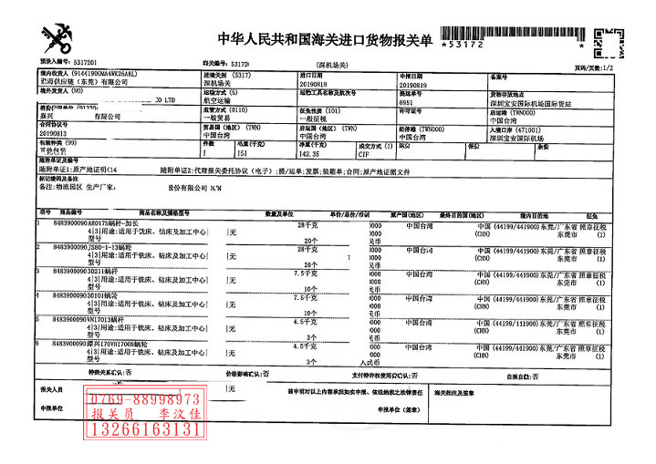 三,臺(tái)灣蝸輪蝸桿空運(yùn)進(jìn)口清關(guān)文件: