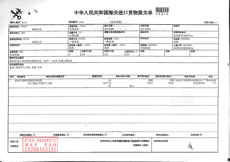 既然柴油發(fā)電機(jī)組進(jìn)口這么麻煩,那如果要進(jìn)口美國的柴油發(fā)電機(jī),事先要了解什么信息?什么情況下才不需要申請自動(dòng)進(jìn)口許可證,怎么來界定呢?清關(guān)時(shí)需要準(zhǔn)備什么文件呢?今天聚海小編就為各位分享剛剛協(xié)助深圳某企業(yè)操作一臺美國產(chǎn)柴油發(fā)電機(jī)清關(guān)的案例,客戶安排空運(yùn)的方式進(jìn)口,清關(guān)口岸為深圳寶安機(jī)場.接下來就讓小編來詳細(xì)的梳理相關(guān)細(xì)節(jié):