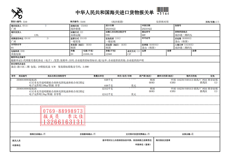 下面我們將重點放在此次韓國膠粘劑廣州南沙新港進口報關(guān)案例梳理環(huán)節(jié).