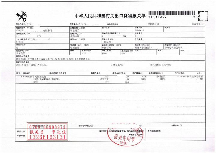 三,多功能加工機(jī)黃埔老港出口報(bào)關(guān)文件: