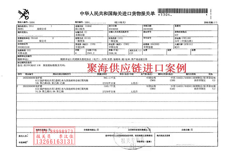 臺灣增光片保護膜如何在深圳蛇口港正確報關(guān)清關(guān)