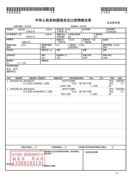 滌淪涂層布深圳鹽田港報(bào)關(guān)出口越南胡志明雙清